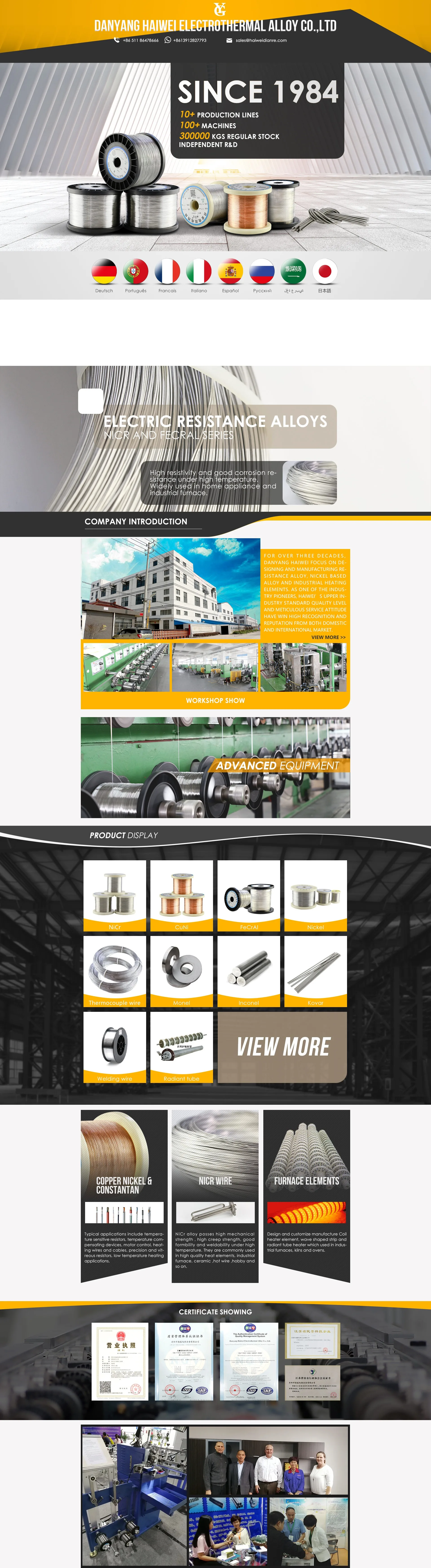 Prodotti principali: Filo di resistenza e filo di nichel, filo di saldatura al nichel, lega speciale e lega di precisione, rame nichel e ferro cromato alluminio, nichel puro